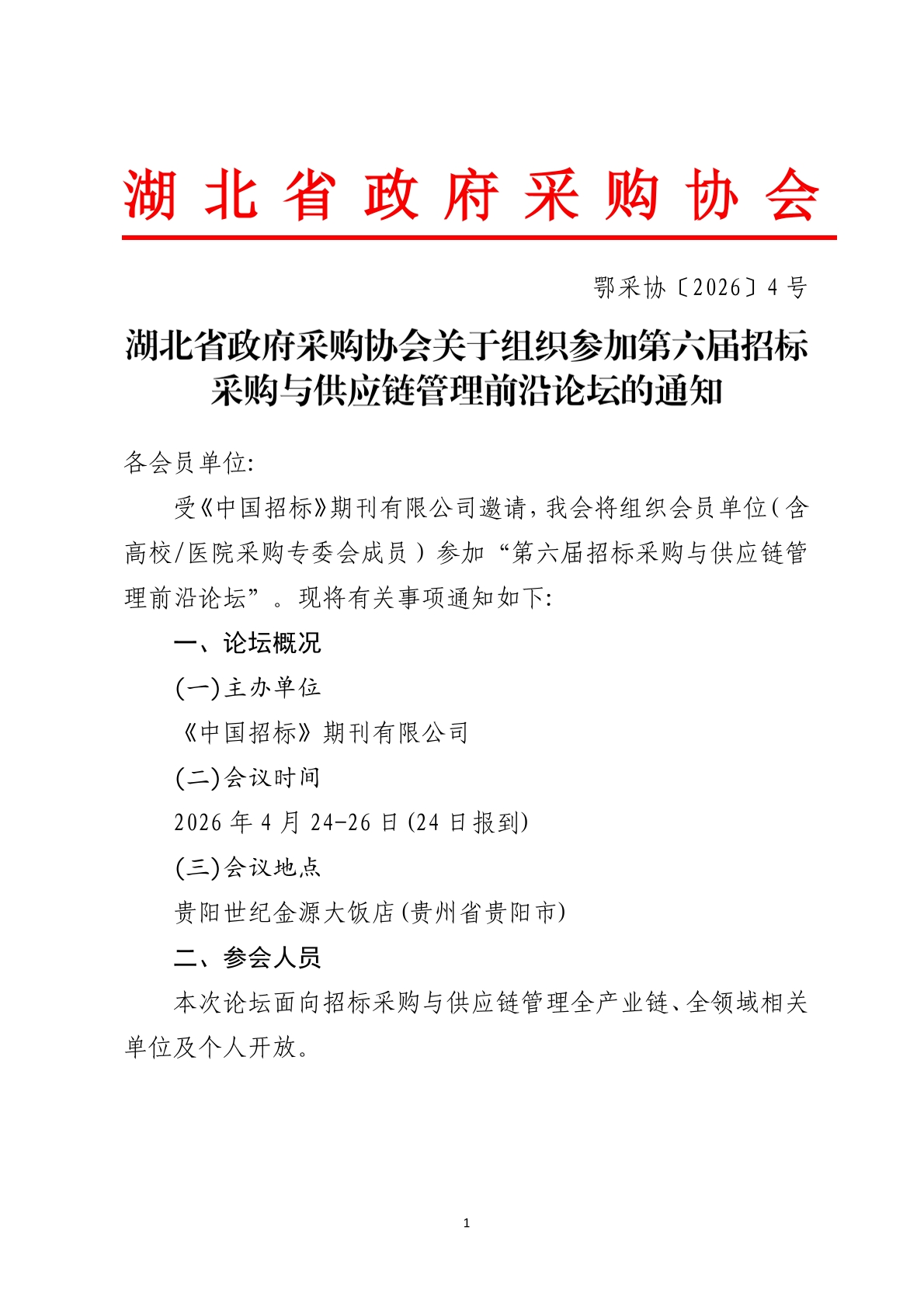 湖北省政府采购协会关于组织参加第六届招标采购与供应链管理前沿论坛的通知