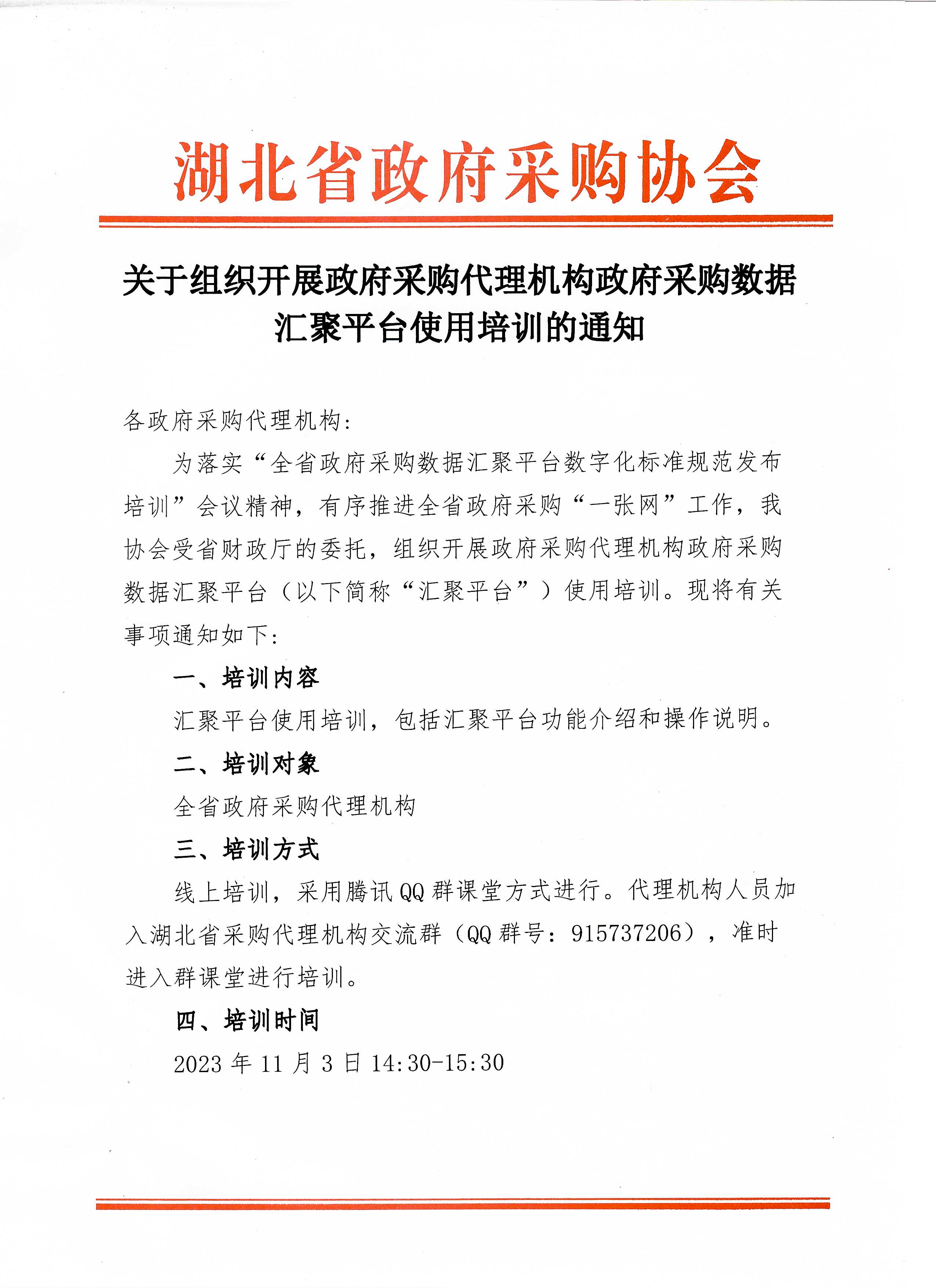 关于组织开展政府采购代理机构政府采购数据汇聚平台使用培训的通知