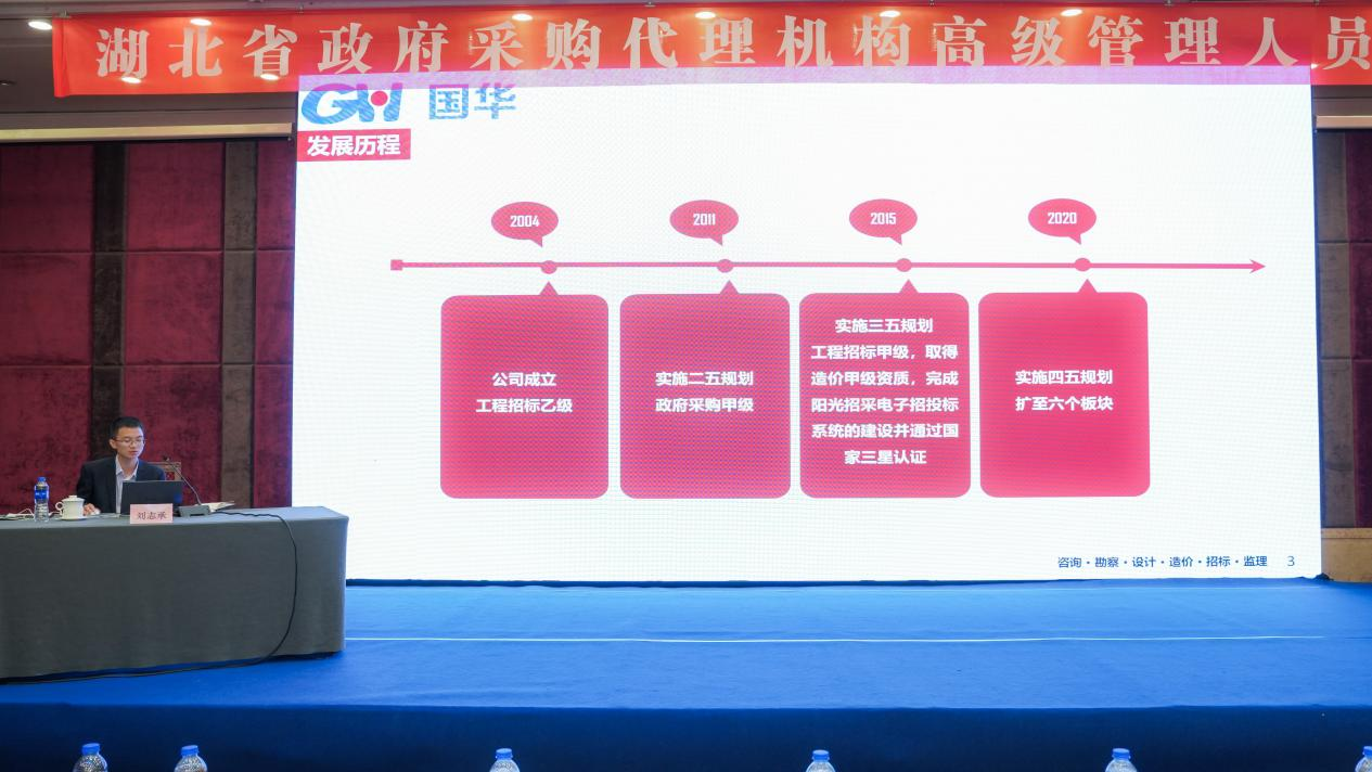 湖北国华项目管理咨询有限公司总经理刘志承介绍了公司的发展过程,对实际工作中各个环节的工作体会等方面进行了经验分享,并提出了相关的建议,带来了先进的经验,分享了下一步的发展规划,受到参训人员的好评。