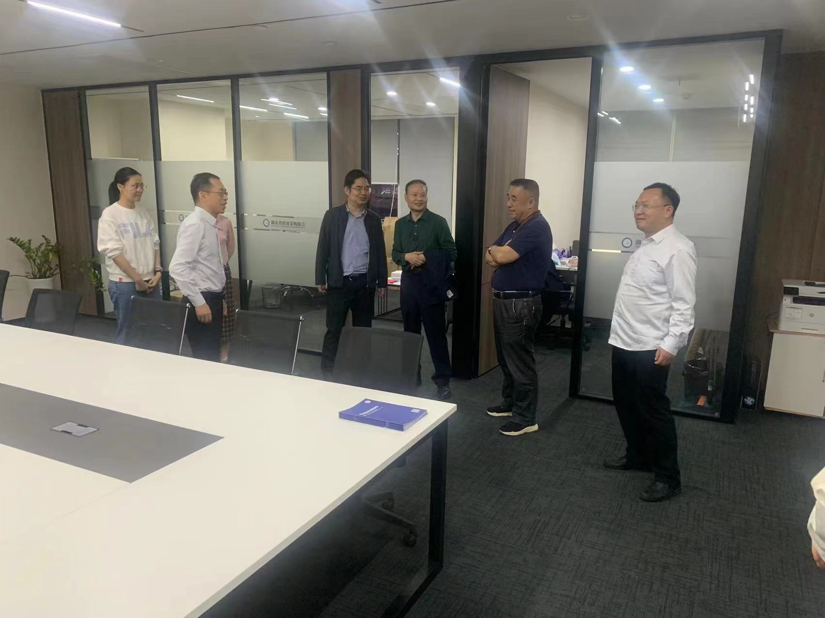 调研会上,双方就政府采购信用管理、政府采购支持创新、评审专家管理等内容进行了深入探讨和交流。 2日下午,江苏省财政厅政府采购管理处处长刘家龙一行莅临湖北省政府采购协会参观调研。协会会长黎明介绍了协会的基本情况,刘处长对湖北省政府采购协会近年来所做的工作表示认可,并且希望两省今后加强交流沟通,共同助力政府采购行业健康发展。 湖北省财政厅政府采购管理处二级调研员刘军、湖北省财政厅政府采购管理处二级调研员程薇、湖北省财政厅政府采购管理处副处长陈静、江苏省财政厅政府采购管理处综合科科长许妹姗 、农业银行江苏省分行普惠金融事业部总经理陶长辉 、农业银行江苏省分行普惠金融事业部客户经理苏丹丹等同志参加会议。